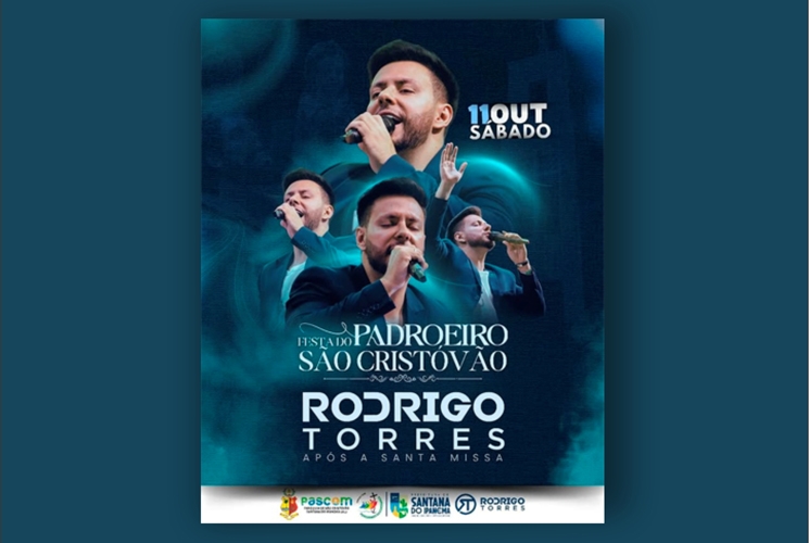 A Paróquia de São Cristóvão promoverá neste sábado (11), após a Santa Missa da segunda noite do novenário em honra ao Padroeiro, um show oracional especial com o cantor católico Rodrigo Torres.