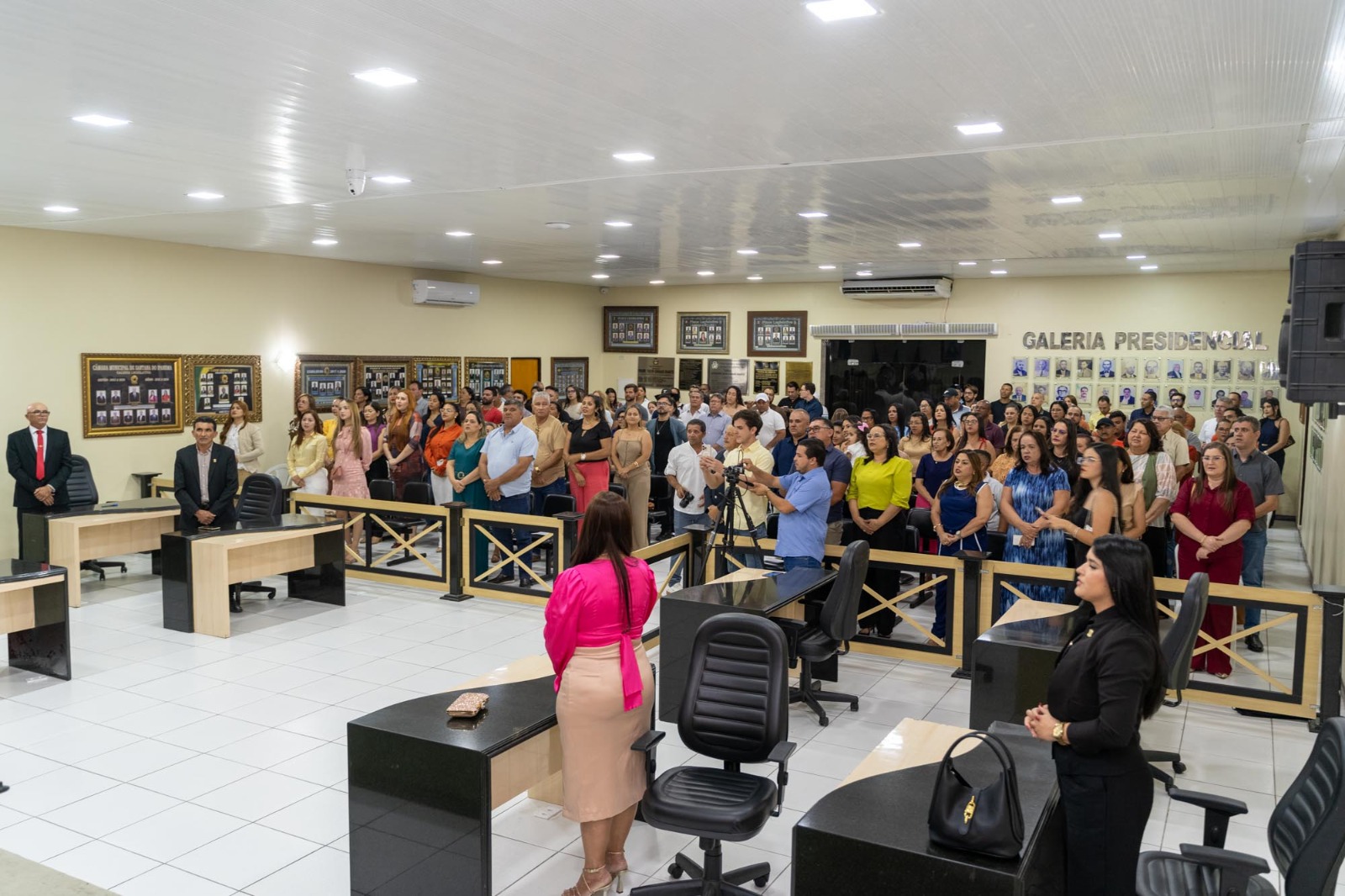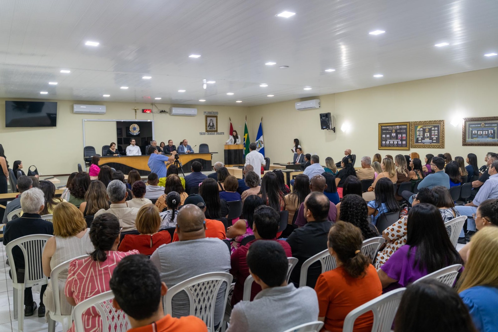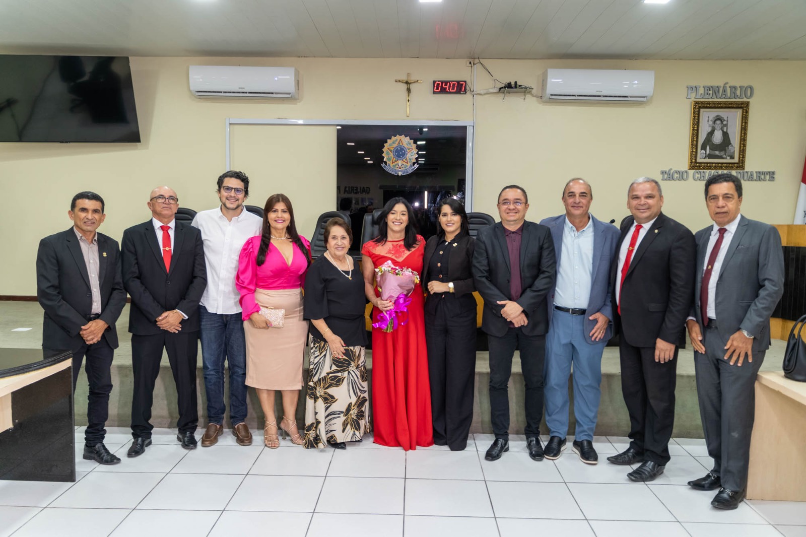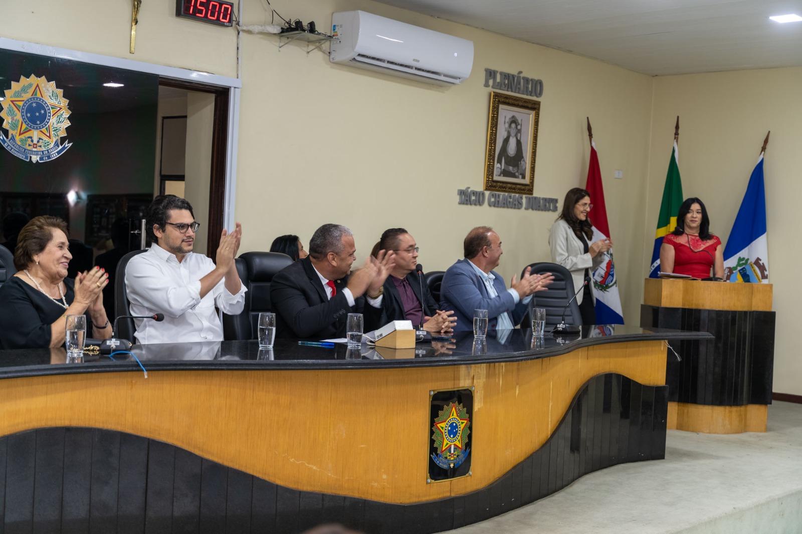 A solenidade de posse, que foi presidida pelo vereador Genildo Bezerra – Papa Tudo, contou com a presença do prefeito Eduardo Bulhões, do vice-prefeito Mario Siqueira Silva (Mário do Laboratório), secretário de Estado da Agricultura Marcelo Melo e a secretária municipal de Políticas para as Mulheres, Renilde Bulhões que compuseram a mesa diretiva, demais vereadores e vereadoras, secretários municipais e convidados especiais.