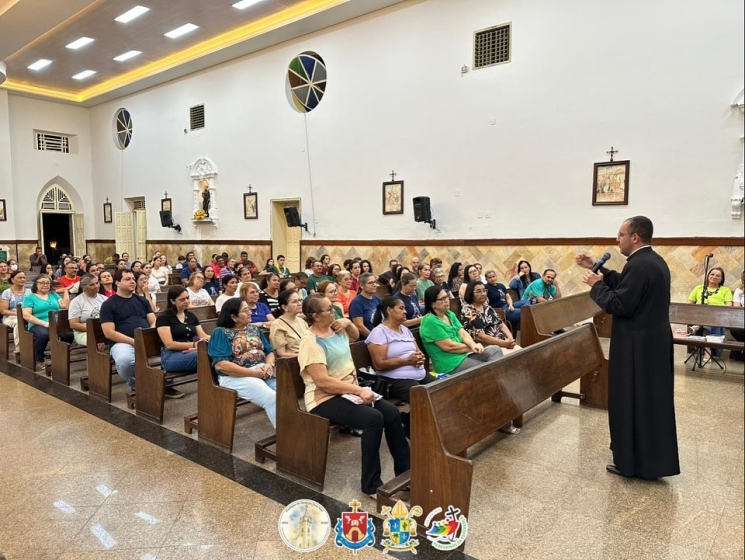 A formação foi conduzida pelo pároco Pe. Jacyel Soares Maciel, que com muita sabedoria e profundidade, nos ajudou a compreender melhor o valor da Eucaristia e o sentido da Santa Missa na vida da Igreja e de cada fiel.