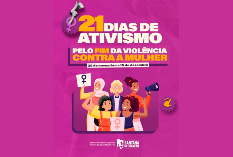 A Prefeitura Municipal de Santana do Ipanema, por meio da Secretaria de Políticas para a Mulher, realizara 21 Dias de Ativismo pelo Fim da Violência contra a Mulher que segue até o dia 10 de dezembro, com ações em diferentes pontos da cidade.