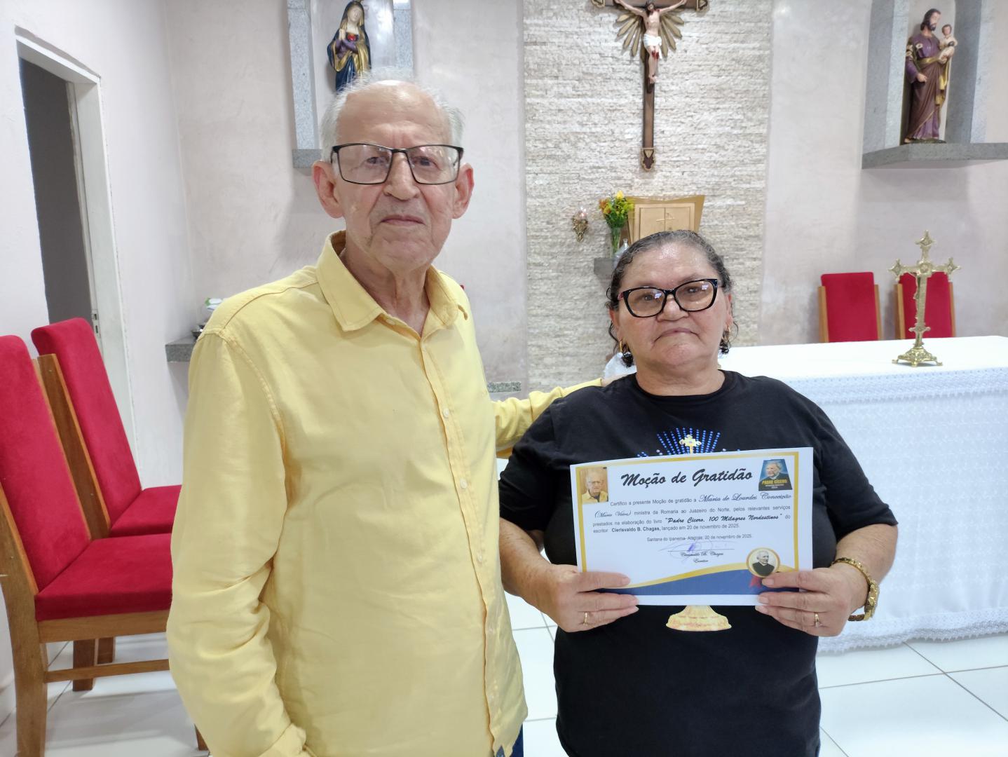 O professor Clerisvaldo entregou um certificado com uma moção para dona Maria Viúva, recebido por um familiar dela.