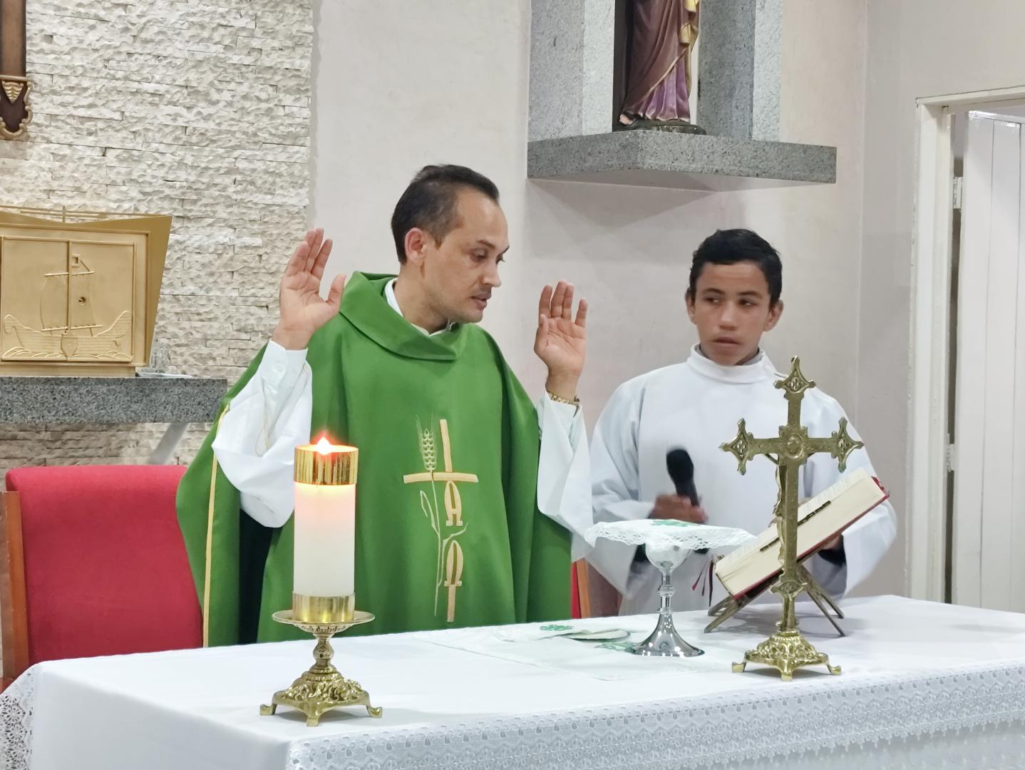 Presidiu a Celebração Eucarística o padre Marcos Renildo, pároco da Paróquia de São Cristóvão.