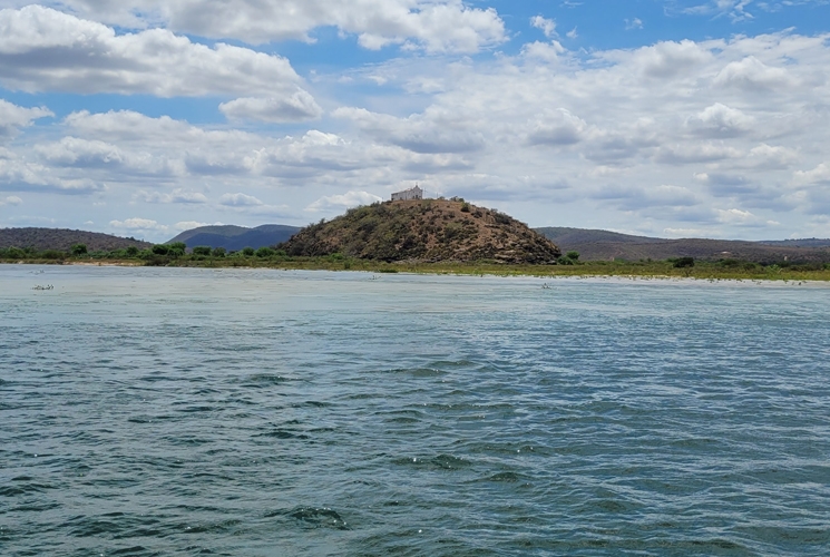 No alto da colina da ilha dos Prazeres, a pequena igreja branca parece vigiar o rio como um farol espiritual. Suas portas e janelas verdes se abrem para o vento, e o São Francisco, lá embaixo, segue seu curso majestoso, carregando histórias, promessas e segredos. Entre os municípios de Belo Monte, em Alagoas, e Porto da Folha, em Sergipe, sua construção remonta a tempos imemoriais no encontro dos rios Ipanema e São Francisco, na Barra do Ipanema.