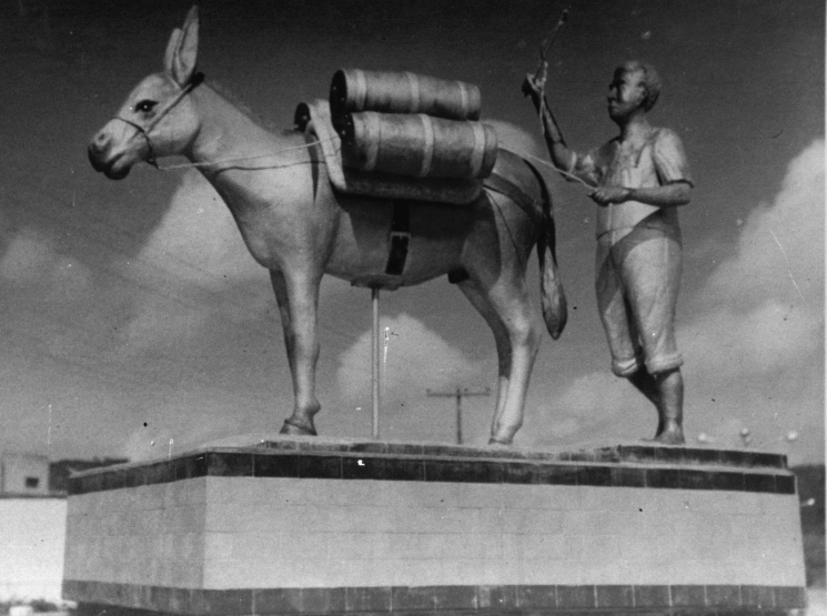 Monumento ao jumento e tangedor original na década de 1970