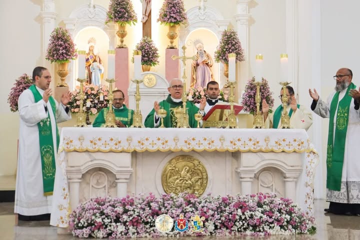 A 9° noite do novenário em preparação aos 190 anos da Paróquia da Senhora Sant’Ana, celebrada no último sábado (7), foi presidida pelo Pe. Adalto Alves, pároco da Paróquia Nossa Senhora do Rosário, Delmiro Gouveia, e concelebrada com os Padre Jacyel e José Paulo, Frei Jarilson e Diácono Edvaldo.