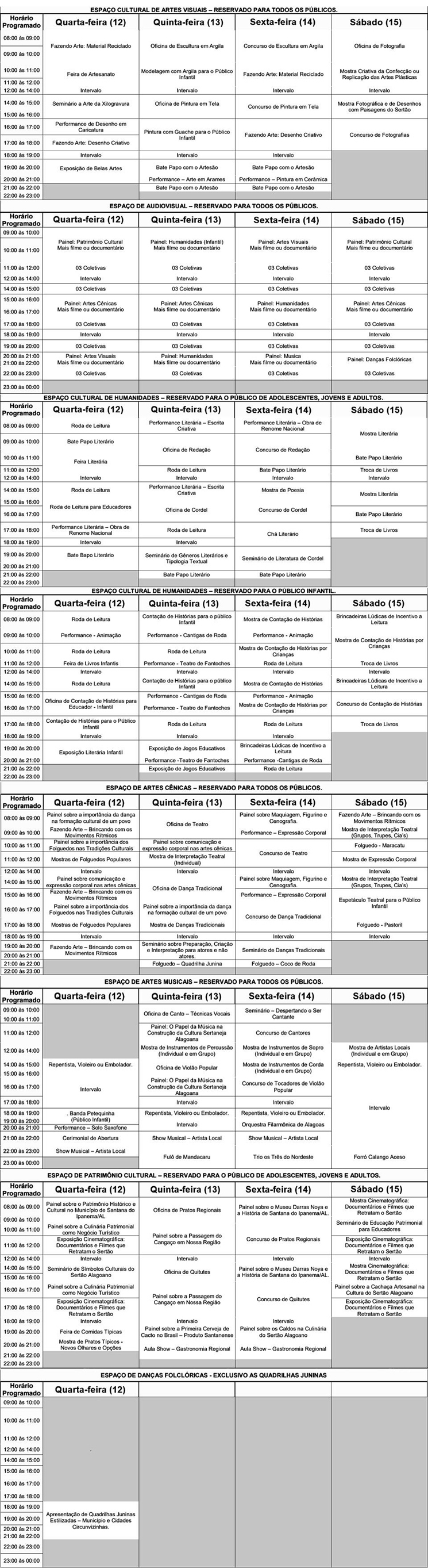 CONFIRA A PROGRAMAÇÃO COMPLETA