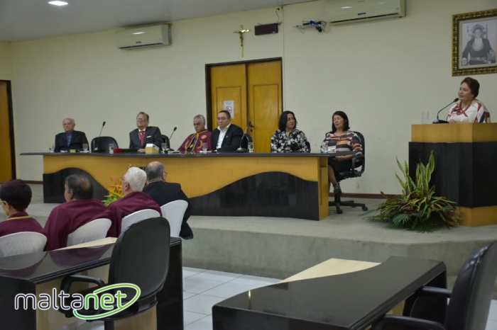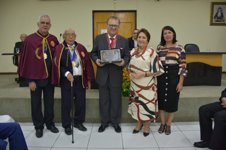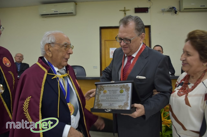 Após a palestra aconteceu a solenidade de entrega da comenda, seguindo o rito próprio da ocasião. O presidente José Malta e o acadêmico Bartolomeu Barros entregaram a placa e as acadêmicas beneméritas Renilde Silva Bulhões Barros e Maria Verônica de Araújo procederam a entrega da medalha.