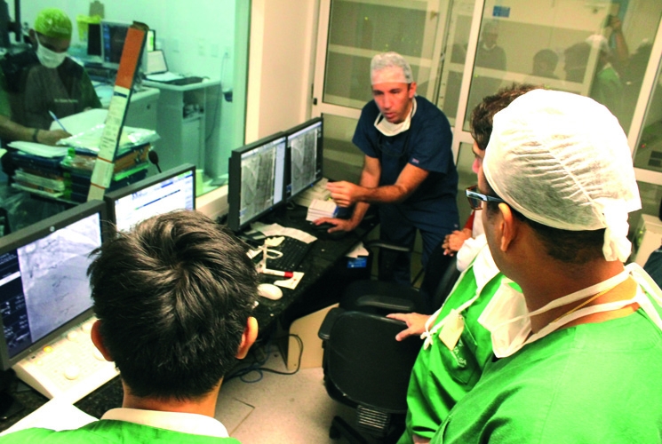 À frente do workshop, o cardiologista intervencionista Evandro Martins Filho. Ele iniciou há cinco anos uma caminhada para trazer tais técnicas para Alagoas e hoje compartilha o seu conhecimento com colegas de todo o País.