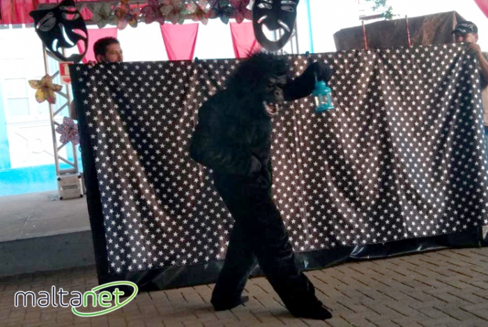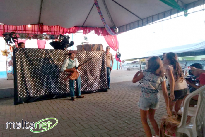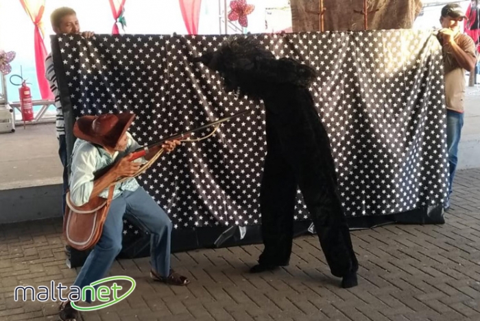 Uma peça do teatro de rua que encanto os espectadores, levando inclusive a criançada a participar da encenação, vibrando com os personagens.