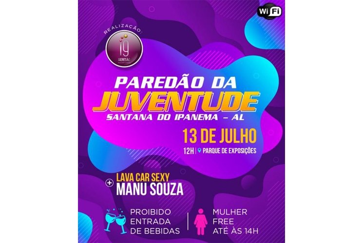 A I9 Sertão Produções e Eventos, no seu 2º ano consecutivo realiza o maior evento de paredões do Sertão alagoano. Denominado “Paredão da Juventude”, o evento acontece no sábado (13) no Parque de Exposição Isaias Vieira Rego, localizado nas margens da rodovia AL-130, que liga Santana do Ipanema a Olho d’Água das Flores.