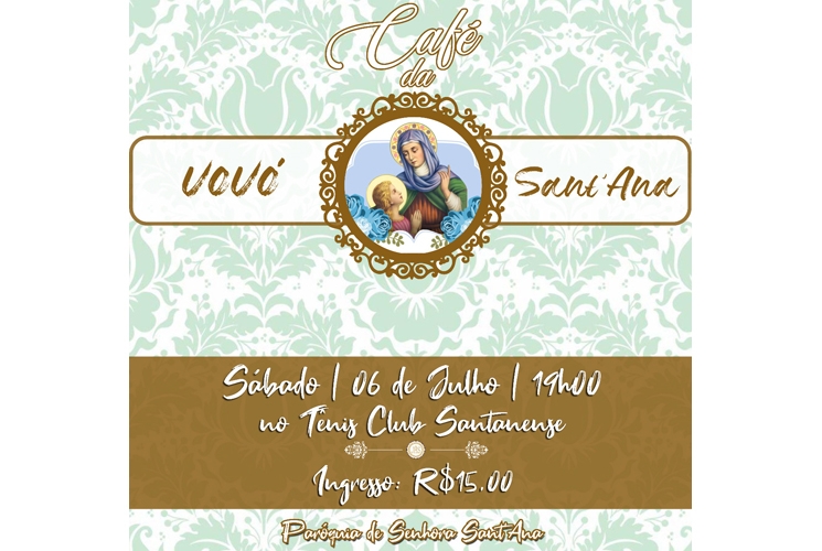 A Paróquia de Senhora Sant´Anna realizará no próximo sábado (06) do Café da Vovó Sant'Ana, que é tradicional jantar beneficente em prol da Festa de Senhora Sant'Ana.