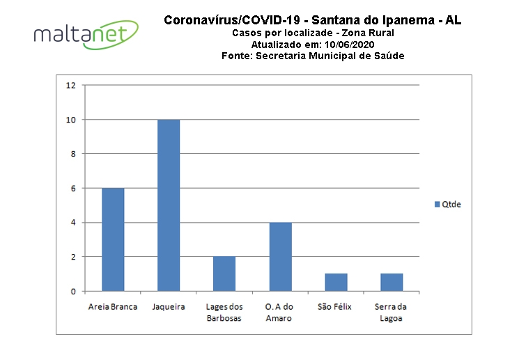 Segundo os dados apresentados, cujas equipes são distribuídas por áreas no município, apenas a localidade Lagoa do Junco não tem casos registrados até esta data.