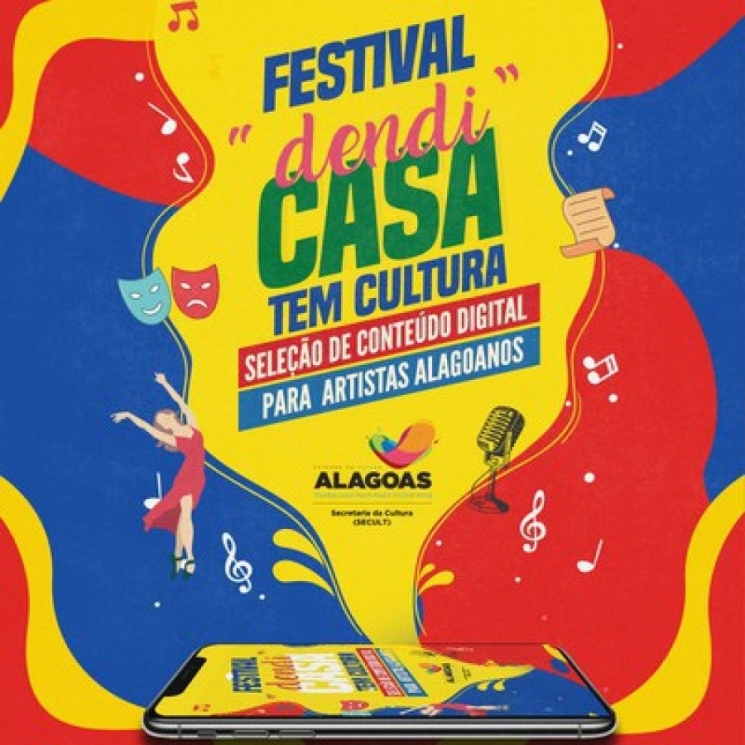 O edital do Festival Dendi Casa Tem Cultura, lançado pela Secretaria de Estado da Cultura (Secult/AL) têm o objetivo de minorar os impactos causados pela pandemia à classe artística. O certame selecionou 340 conteúdos digitais das mais diversas categorias da cultura e se apresenta na modalidade de “credenciamento” e tem de fluxo contínuo. “Nosso intuito é gerar renda, e oferecer arte e cultura gratuita à população durante o período de quarentena causado pela Covid-19, sem oferecer riscos à saúde, incentivando os alagoanos a ficarem em casa”, declarou a secretária de cultura Mellina Freitas.As apresentações serão online com duração mínima de 40 minutos e máxima de uma hora, com uma programação criada entre a secretaria e os artistas selecionados. A programação do mês de julho está prevista para ainda esta semana.