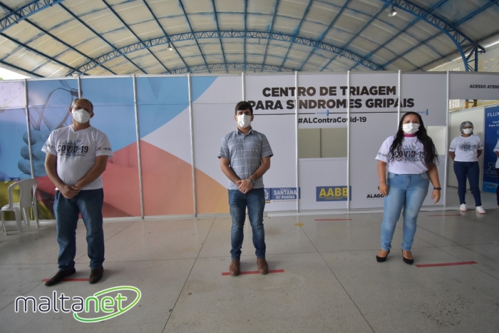 Em solenidade que contou com a presença da prefeita, em exercício, de Santana do Ipanema Christiane Bulhões Barros Silva Melo, do deputado federal Isnaldo Bulhões Barros Júnior, dos secretários e secretárias municipais Cleudson Nobre (Chefe de Gabinete), Normanda da Silva Santiago (Saúde), Maria Verônica de Araújo (Trabalho, Assistência e Desenvolvimento Social), Andréa Cristhina Brandão Teixeira (Educação), Jorge Tavares Santana (Agricultura e meio Ambiente), vereadora e vereadores: Audilene Apolinário, Mário Siqueira Silva (Presidente da Câmara), Moacir Júnior e Roberto Oliveira Silva, foi entregue a população das 9ª e 10ª regiões da saúde o Centro de Triagem de Síndromes Gripais de Santana do Ipanema. Na solenidade os presentes observaram distanciamento recomendado pelos órgãos de saúde.
