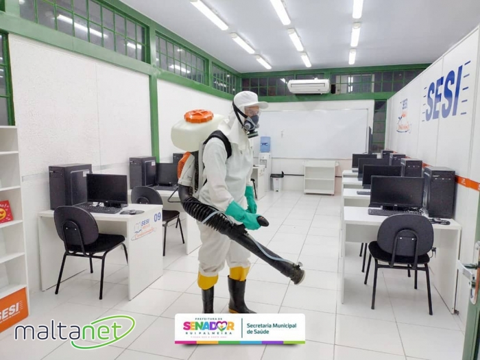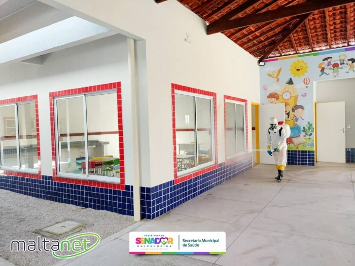 Com o foco na volta às aulas, a Prefeitura realizou também a sanitização de todas as escolas municipais. A ação tem como objetivo garantir um ambiente mais seguro para esse retorno presencial. É importante ressaltar que as escolas estão retornando com 50% da capacidade total, respeitando assim os limites de distanciamento entre os alunos.