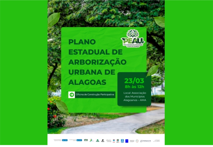 A Secretaria de Estado do Meio Ambiente e dos Recursos Hídricos de Alagoas inicia, na segunda-feira (23), no auditório da Associação dos Municípios Alagoanos (AMA), em Maceió, às 8h, a primeira oficina presencial do Plano Estadual de Arborização Urbana, reunindo representantes do Governo do Estado, universidades, Ministério Público e gestores municipais, com participação das secretarias de Meio Ambiente e Saúde, para apresentação do diagnóstico inicial, análise das vulnerabilidades ambientais e definição das bases técnicas que irão orientar a construção de cidades mais resilientes, saudáveis e preparadas para os desafios climáticos.